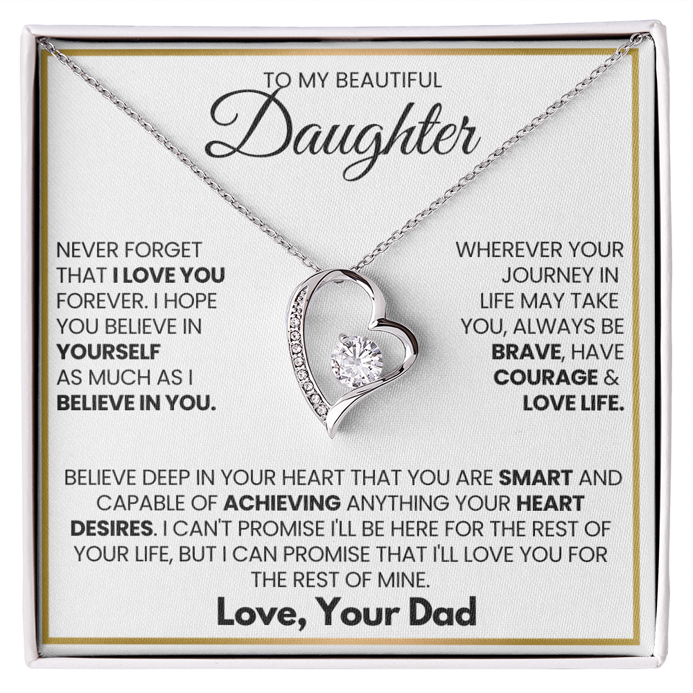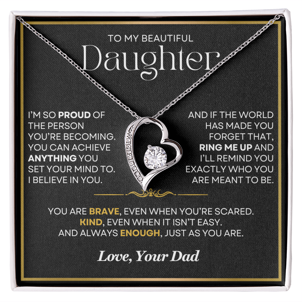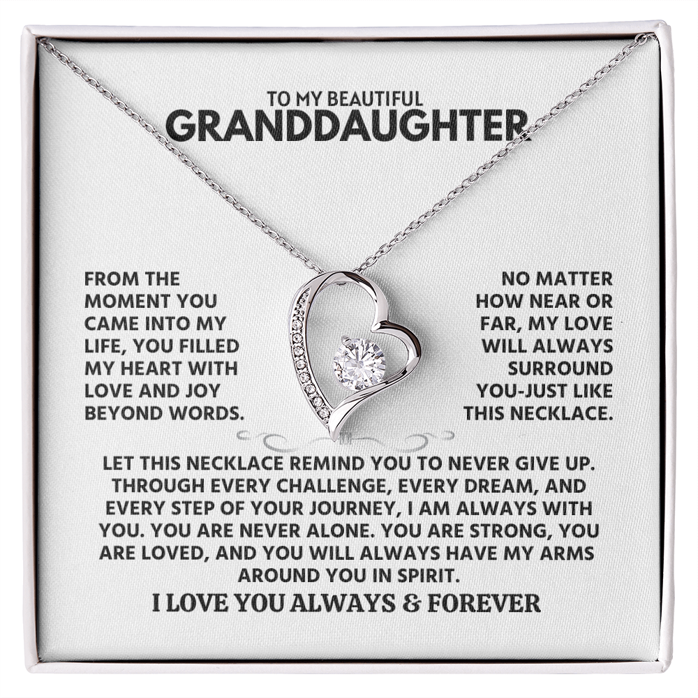 From the moment you came into my life, you filled my heart with love and joy beyond words. No matter how near or far, my love will always surround you-just like this necklace. Let this necklace remind you to never give up. Through every challenge, every dream, and every step of your journey, I am always with you. You are never alone. You are strong, you are loved, and you will always have my arms around you in spirit.